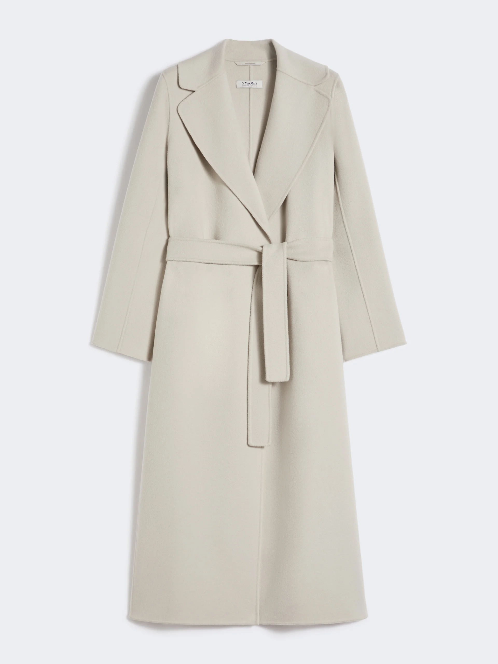 DETAILS Long wrap coat with deep central slit on the back. Coat made from hand-sewn, pure wool double drap Straight cut Lapel collar Long set-in sleeves with slit at the cuff Fastens with a matching belt Side inset pockets Semi-lined with silk sleeves COMPOSITION AND CARE Fabric 100% virgin wool; - except joining thread; lining 100% silk. Do not wash; do not bleach; do not tumble dry; cool iron; professionally dry clean perchloroethylene - mild process; do not wet clean. Distributed by Max Mara S.r.l., registered office in Reggio Emilia (Italy), Via Giulia Maramotti 4, 42124 (IT)