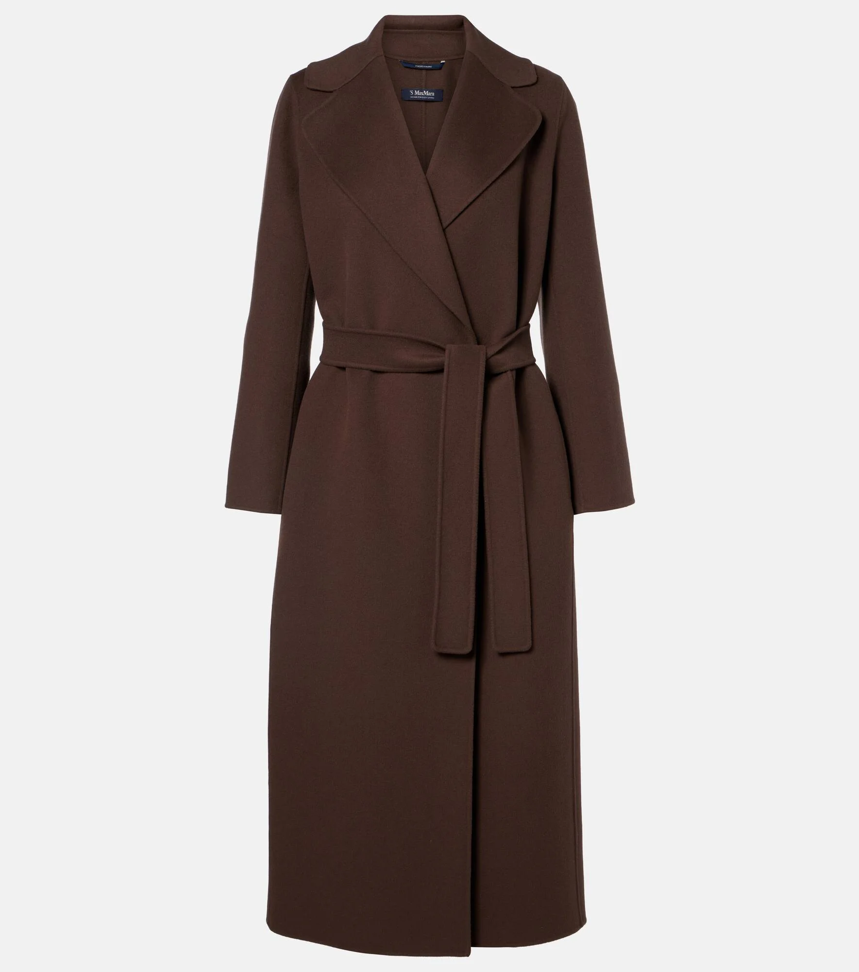 'S Max Mara conveys contemporary elegance through streamlined silhouettes and premium fabrics. Made from virgin wool to ensure warmth, the Poldo wrap coat features notched lapels and a detachable belt to cinch the waist. Product Details - Material: 100% virgin wool - Care instructions: dry clean - Made in China - Color: brown - Designer color name: Chocolate - Lining: 100% silk - Collar: notch neck - Pockets: side slit pockets - Detachable belt - Closure: belted waist - Item number: P01125780 Size & Fit - True to size - Loose fit, comes with belt - Non-stretchy fabric - The model seen in the picture is 178cm-5'10" and wearing a size DE 34