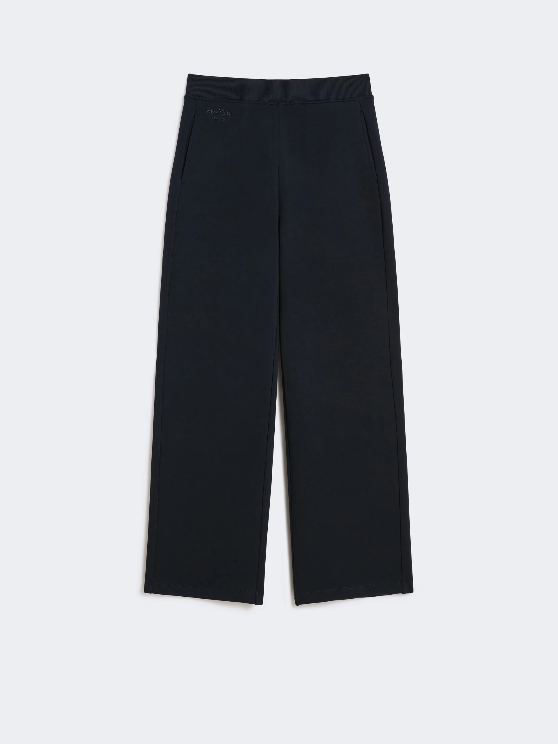 DETAILS Relaxed-fit trousers. Brushed cotton jersey trousers Ribbed elasticated waistband Side pockets Welt pocket on the rear right-hand side Small embroidered logo above the right pocket COMPOSITION AND CARE Jersey fabric 88% cotton, 8% polyamide, 4% elastane; - exclusive of embroideries. Machine wash cold delicate cycle; do not bleach; do not tumble dry; flat drying in the shade; cool iron; professionally dry clean perchloroethylene - mild process; professional wet cleaning - very mild process.; iron with a cloth between.; using neutral detergent.; turn the articles inside out before washing.; to be ironed on reverse. Distributed by Max Mara S.r.l., registered office in Reggio Emilia (Italy), Via Giulia Maramotti 4, 42124 (IT)