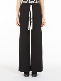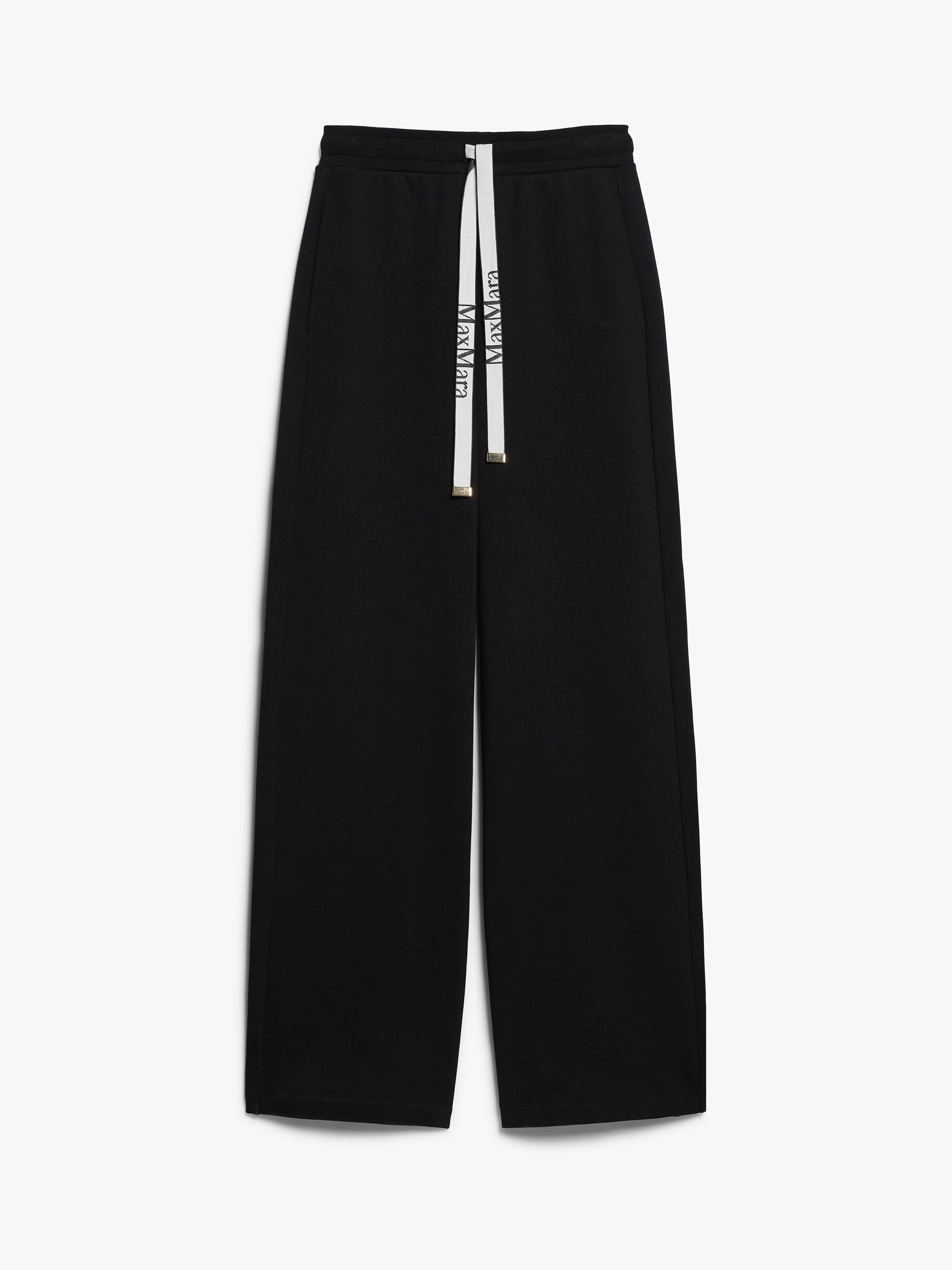 DETAILS Joggers featuring a wide-leg silhouette and elasticated waist with logo drawstring. Made of soft cotton jersey, they are finished with side inset pockets and a welt pocket on the back. COMPOSITION AND CARE 75% cotton, 25% polyester. Machine wash cold delicate cycle; do not bleach; do not tumble dry; flat drying in the shade; cool iron; professionally dry clean perchloroethylene - mild process; professional wet cleaning - very mild process.; iron with a cloth between.; using neutral detergent.; protect accessories before washing.; turn the articles inside out before washing.; to be ironed on reverse. Distributed by Max Mara S.r.l., registered office in Reggio Emilia (Italy), Via Giulia Maramotti 4, 42124 (IT)