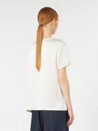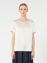 DETAILS Basic T-shirt with an essential yet versatile style. Viscose-blend satin T-shirt Straight fit Crew-neck Short set-in sleeves COMPOSITION AND CARE 64% acetate, 36% viscose. Do not wash; do not bleach; do not tumble dry; cool iron; professionally dry clean perchloroethylene - mild process; do not wet clean. Distributed by Max Mara S.r.l., registered office in Reggio Emilia (Italy), Via Giulia Maramotti 4, 42124 (IT)
