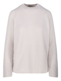 ribbed-knit raglan-sleeve sweater Highlights - White - Ribbed knit - Raglan sleeves - High neck - Panelled design - Straight hem Made in Italy Composition Fabric 100% Washing instructions Read Manufacturer Guidelines