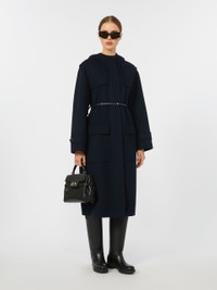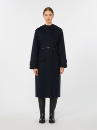 DETAILS Parka-style coat with matching double belt, in fabric and leather. Coat made from hand-sewn, pure wool double drap Oversized lines Set-in sleeves with adjustable cuff straps Concealed button fastening at the front Large pockets with applied flaps at the front Cape-effect stitched detail on the back Unlined COMPOSITION AND CARE Coat fabric 100% virgin wool; - except joining thread; lining 100% silk; with belt in 80% polyester, 20% elastane; with details in cattle. Coat: do not wash; do not bleach; do not tumble dry; cool iron; professionally dry clean perchloroethylene - mild process; do not wet clean.; Wash the garment while it is fastened.; Turn the articles inside out before washing. Distributed by Max Mara S.r.l., registered office in Reggio Emilia (Italy), Via Giulia Maramotti 4, 42124 (IT)