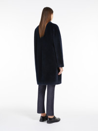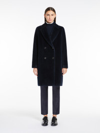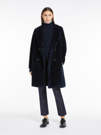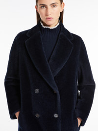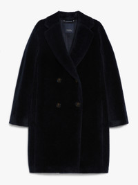 DETAILS Midi double-breasted coat made of luxurious, soft alpaca and wool teddy. The style features a lapel collar, inset side pockets, and sleeves set-in on the front and kimono-cut on the back. The lined style closes with visible buttoning. COMPOSITION AND CARE Fabric 62% alpaca, 38% virgin wool; lining 69% acetate, 31% cupro. Do not wash; do not bleach; do not tumble dry; cool iron; professionally dry clean perchloroethylene - mild process; do not wet clean.; wash the garment while it is fastened.; do not iron the buttons.; turn the articles inside out before washing.; contains non-textile parts of animal origin. Distributed by Max Mara S.r.l., registered office in Reggio Emilia (Italy), Via Giulia Maramotti 4, 42124 (IT)
