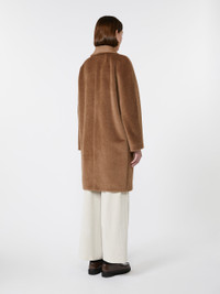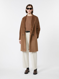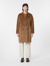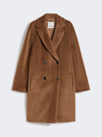 DETAILS Midi coat featuring a cocoon fit that tapers slightly at the hem. Coat in wool and alpaca fabric with a soft and ultra-fluffy texture Lapel collar Set-in sleeves on the front and kimono sleeves at the back Double-breasted visible horn button fastening In-seam side pockets Lined model COMPOSITION AND CARE Fabric 62% alpaca, 38% virgin wool; lining 69% acetate, 31% cupro. Do not wash; do not bleach; do not tumble dry; cool iron; professionally dry clean perchloroethylene - mild process; do not wet clean.; wash the garment while it is fastened.; do not iron the buttons.; protect buttons before washing.; turn the articles inside out before washing.; contains non-textile parts of animal origin. Distributed by Max Mara S.r.l., registered office in Reggio Emilia (Italy), Via Giulia Maramotti 4, 42124 (IT)