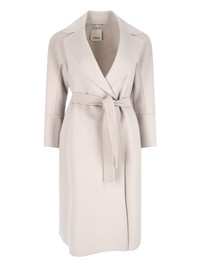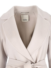 MAX'S MAX MARA 'ARONA' VIRGIN WOOL COAT IN GRAY WITH CLASSIC LAPELS, LONG SLEEVES, FRONT BUTTON CLOSURE, BELT AT THE WAIST, TWO VERTICAL FRONT POCKETS, AND STRAIGHT HEM. PRODUCT INFO PRODUCT CODE 2619011021600032 COMPOSITION: 100% VIRGIN WOOL SIZE AND FIT: REGULAR FIT MADE IN: ITALY