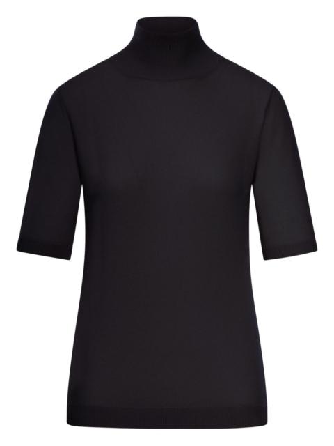 short-sleeve turtleneck top Highlights - Dark blue - Turtleneck - Short sleeves - Ribbed hem - Ribbed cuffs - Knitted Imported Composition Lambs Wool 100% Washing instructions Read Manufacturer Guidelines