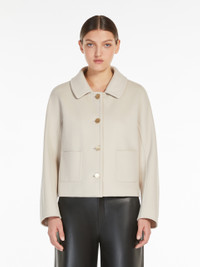 DETAILS Short single-breasted jacket in fine hand-sewn double-faced pure wool broadcloth featuring a shirt collar, long kimono sleeves and patch front pockets. Visible metal button fastening on the front. COMPOSITION AND CARE Fabric 100% virgin wool; - except joining thread. Do not wash; do not bleach; do not tumble dry; cool iron; professionally dry clean perchloroethylene - mild process; do not wet clean.; wash the garment while it is fastened.; protect buttons before washing.; turn the articles inside out before washing. Distributed by Max Mara S.r.l., registered office in Reggio Emilia (Italy), Via Giulia Maramotti 4, 42124 (IT)