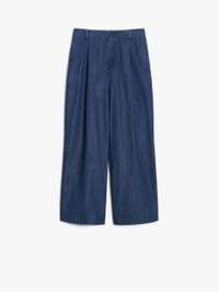 DETAILS Barrel-leg trousers in garment-washed pure-cotton indigo denim, featuring a wide leg, front waist darts, inset side pockets, and welt pockets at the back. Finished with belt loops and a concealed zip and hook fastening. COMPOSITION AND CARE 100% cotton. Machine wash cold delicate cycle; do not bleach; do not tumble dry; line drying in the shade; cool iron; professionally dry clean perchloroethylene - mild process.; wash the garment while it is fastened.; do not iron the buttons.; protect buttons before washing.; take care when wearing light-coloured clothes or accessories because, with the heat of the body, the indigo fabric , may fade and stain. be careful while sitting on light coloured surfaces, especially if wet. wash garments separately and always turned inside out. hang the garment turned inside out by avoiding to expose it to direct sunlight. avoid removing isolated stains.; contains non-textile parts of animal origin. Distributed by Max Mara S.r.l., registered office in Reggio Emilia (Italy), Via Giulia Maramotti 4, 42124 (IT)
