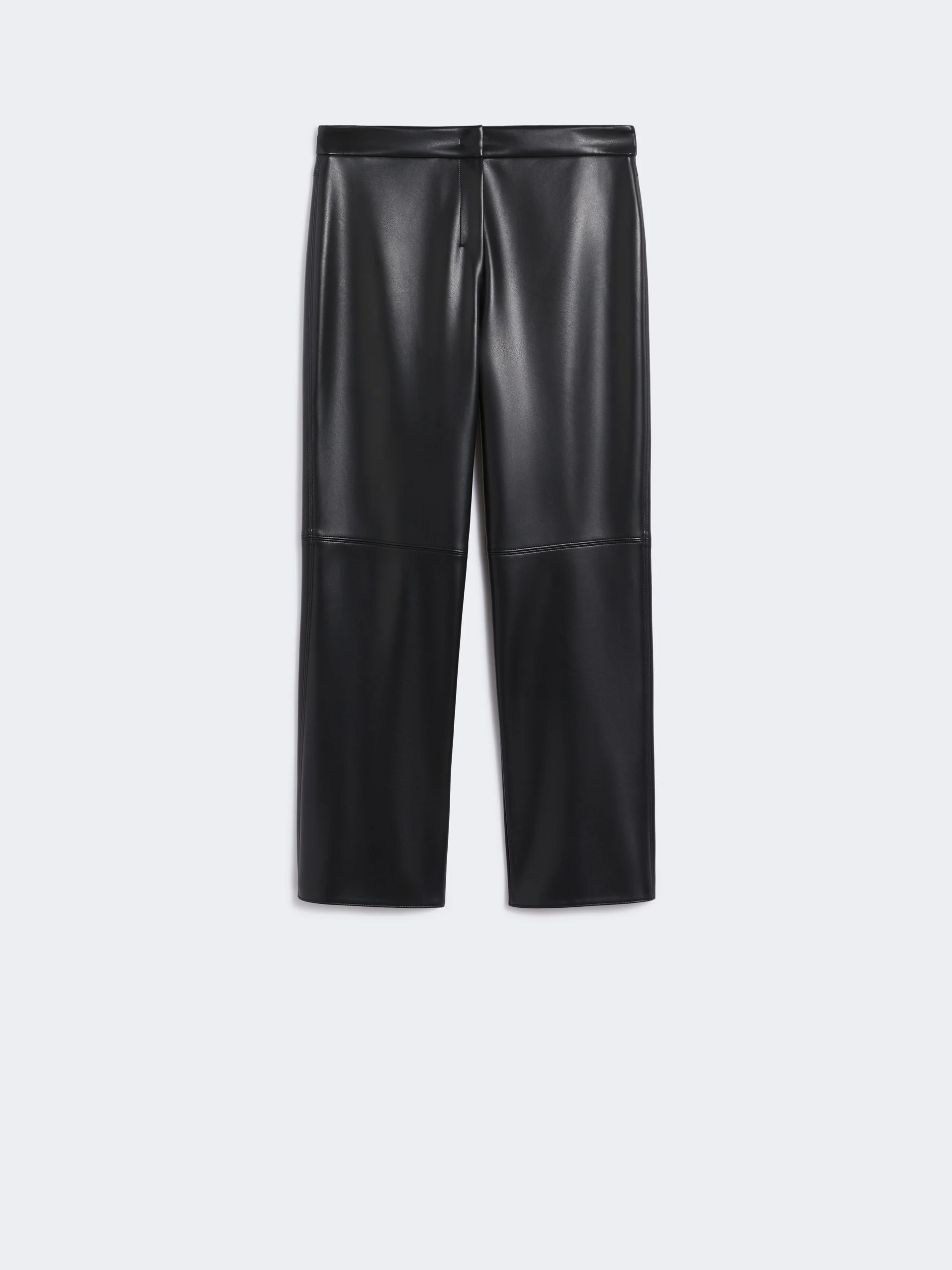 DETAILS Slim-fit trousers featuring leather goods-style darts and topstitching. Trousers in soft coated fabric Slightly flared at the hem Patch rear pockets High-cut waistband with a fly-covered zip and hook-and-bar fastening Cropped ankle cut COMPOSITION AND CARE Jersey fabric 100% polyester; layer polyurethanic resin. Hand wash cold; do not bleach; do not tumble dry; flat drying in the shade; cool iron; professionally dry clean perchloroethylene - mild process; do not wet clean.; iron with a cloth between.; using neutral detergent.; don’t rub.; turn the articles inside out before washing.; to be ironed on reverse. Distributed by Max Mara S.r.l., registered office in Reggio Emilia (Italy), Via Giulia Maramotti 4, 42124 (IT)
