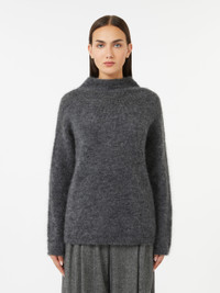 DETAILS Seamless sweater with an extremely fluffy and light texture. Mohair-blend yarn sweater Relaxed fit Slightly raised neck Long sleeves Rib-knit trims Straight hem COMPOSITION AND CARE 82% mohair, 16% polyamide, 2% elastane. Hand wash cold (40°c max); do not bleach; do not tumble dry; flat drying in the shade; cool iron; professionally dry clean perchloroethylene - mild process; do not wet clean.; iron with a cloth between.; using neutral detergent.; turn the articles inside out before washing.; to be ironed on reverse. Distributed by Max Mara S.r.l., registered office in Reggio Emilia (Italy), Via Giulia Maramotti 4, 42124 (IT)