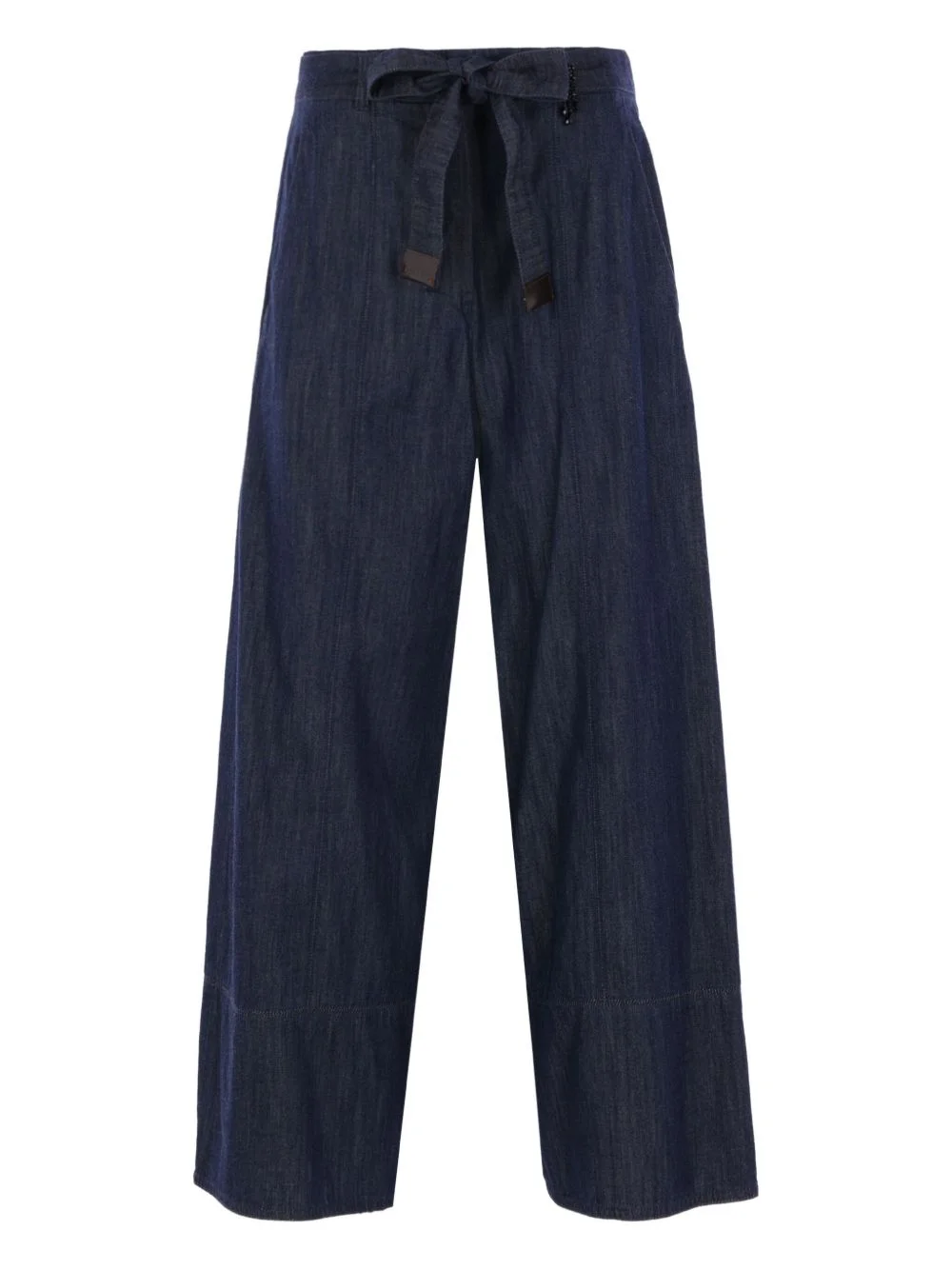 tie-waist cotton jeans Highlights - Blue - Belt - Rear welt pockets - Jewel applique Imported Composition Cotton 100% Washing instructions Machine Wash