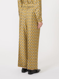 DETAILS Trousers cropped to the ankle with all-over printed motif. Pure silk twill trousers Flowing style Elasticated waist back Fastening with a wide waistband tab, zip fly and small hook Welt pockets on the sides Trouser crease on the leg Matching belt to tie at the waist COMPOSITION AND CARE 100% silk. Do not wash; do not bleach; do not tumble dry; cool iron; professionally dry clean perchloroethylene - mild process; do not wet clean.; wash the garment while it is fastened.; contains non-textile parts of animal origin. Distributed by Max Mara S.r.l., registered office in Reggio Emilia (Italy), Via Giulia Maramotti 4, 42124 (IT)