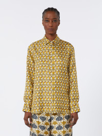DETAILS Reversible shirt with contrasting internal and external printed motif. Pure silk twill shirt Slightly flared line Classic pointed collar Set-in sleeves with shirt cuff and side button Front fastening with visible buttons Rounded side slits Asymmetrical hem that is slightly longer at the back COMPOSITION AND CARE Fabric 100% silk; inner fabric 100% silk. Do not wash; do not bleach; do not tumble dry; cool iron; professionally dry clean perchloroethylene - mild process; do not wet clean.; wash the garment while it is fastened.; protect buttons before washing.; turn the articles inside out before washing.; contains non-textile parts of animal origin. Distributed by Max Mara S.r.l., registered office in Reggio Emilia (Italy), Via Giulia Maramotti 4, 42124 (IT)