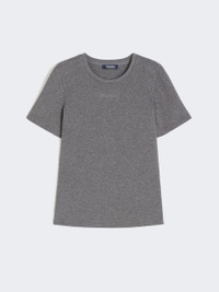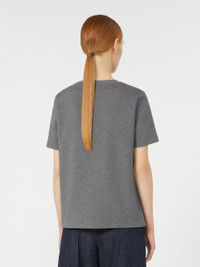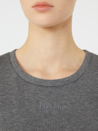 DETAILS Basic T-shirt customised with embroidered logo detail on the front. - Technical cotton scuba jersey T-shirt - Straight fit - Crew-neck - Short set-in sleeves - Straight hem COMPOSITION AND CARE Jersey fabric 78% cotton, 16% polyester, 6% elastane; - exclusive of embroideries. Hand wash cold; do not bleach; do not tumble dry; flat drying in the shade; cool iron; professionally dry clean perchloroethylene - mild process; do not wet clean.; iron with a cloth between.; using neutral detergent.; don’t rub.; turn the articles inside out before washing.; to be ironed on reverse. Distributed by Max Mara S.r.l., registered office in Reggio Emilia (Italy), Via Giulia Maramotti 4, 42124 (IT)