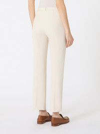 DETAILS Tailored trousers with a slightly flared cut at the hem. Trousers in stretch cotton-blend fabric Slim fit High-cut waistband with a fly-covered zip and hook-and-bar fastening Pressed pleat detail on the leg Belt loop detail at the waist Sewn pleats at the back of the waist COMPOSITION AND CARE 52% cotton, 41% polyamide, 7% elastane. Machine wash cold delicate cycle; do not bleach; do not tumble dry; line drying in the shade; cool iron; professionally dry clean perchloroethylene - mild process.; wash the garment while it is fastened.; do not iron the buttons.; protect buttons before washing.; contains non-textile parts of animal origin. Distributed by Max Mara S.r.l., registered office in Reggio Emilia (Italy), Via Giulia Maramotti 4, 42124 (IT)