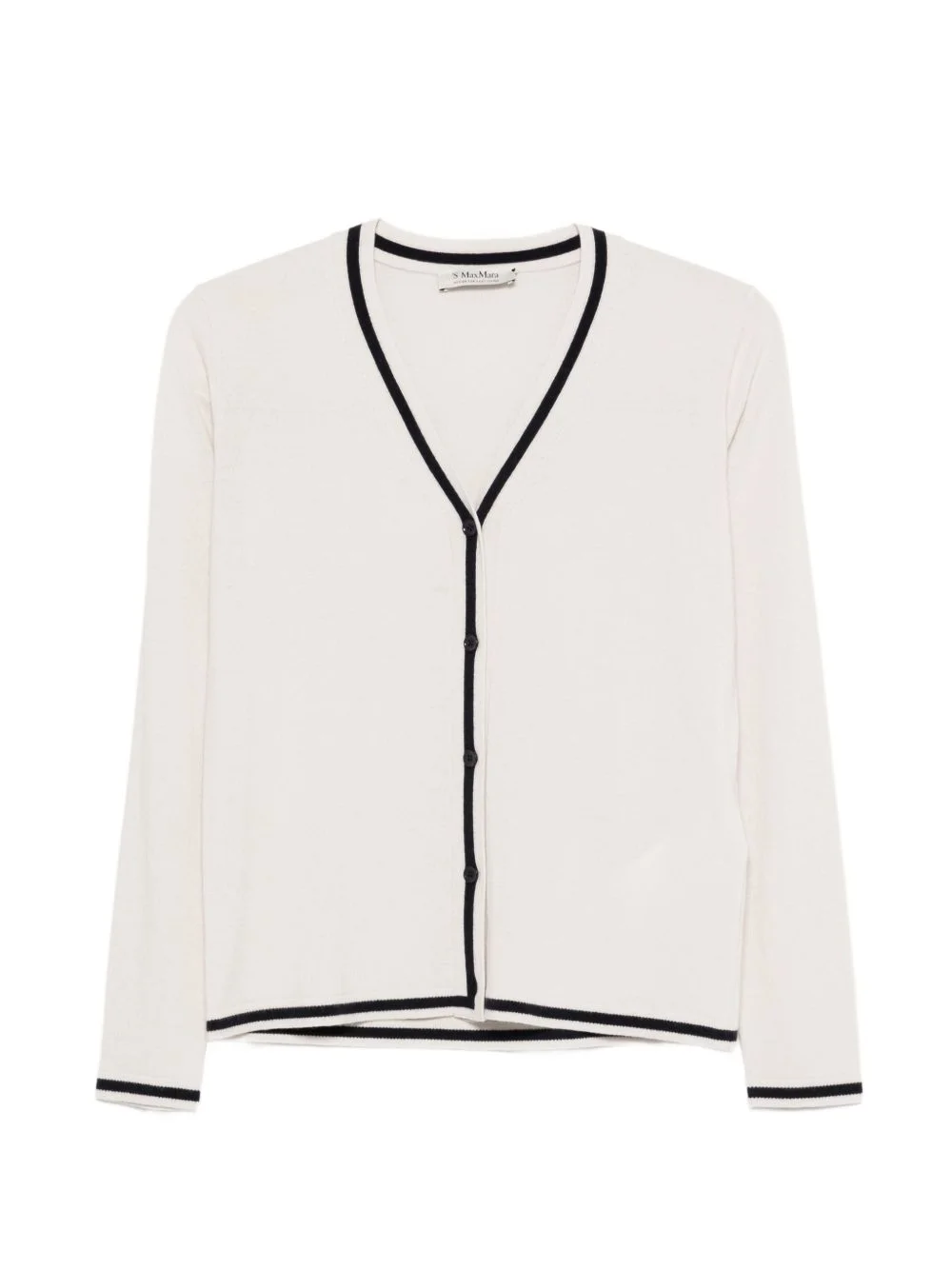 V-neck cardigan Highlights - Beige - Black trims - Button fastening - V-neck - Long sleeves - Wool Made in Italy Composition Wool 100% Washing instructions Hand Wash