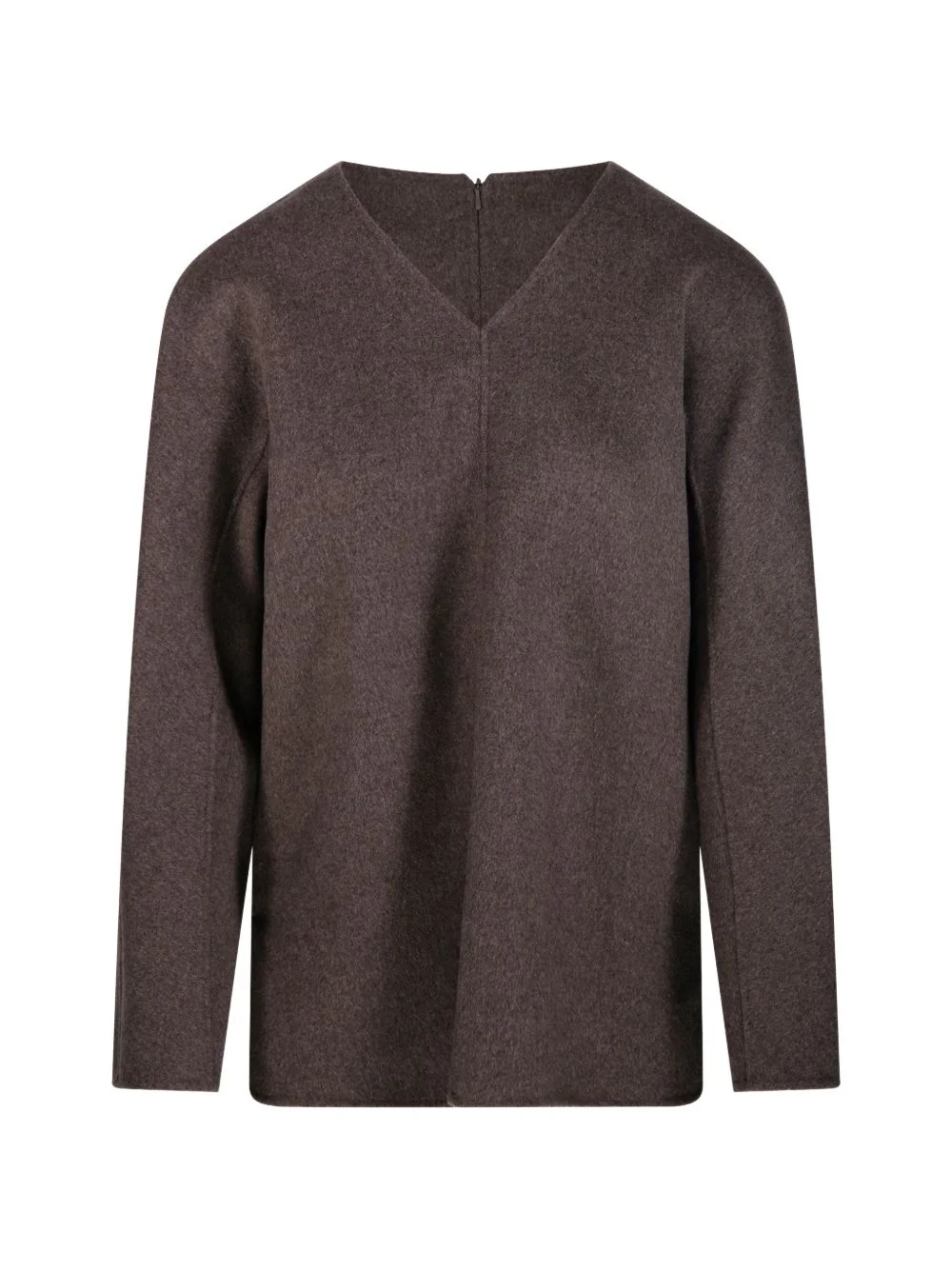 V-neck wool blouse Highlights - Brown - V-neck - Long sleeves - Rear zip fastening Made In Italy Composition Virgin Wool 100% Washing instructions Read Manufacturer Guidelines