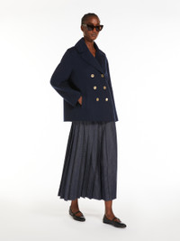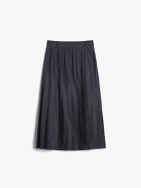 DETAILS Long skirt in denim-effect cotton fabric, featuring a pleated pattern that gives a slightly flared volume to the silhouette. Finished with belt loops at the waist. Concealed zip fastening at the side. COMPOSITION AND CARE 77% cotton, 23% polyester. Machine wash cold delicate cycle; do not bleach; do not tumble dry; line drying in the shade; cool iron; professionally dry clean perchloroethylene - mild process. Distributed by Max Mara S.r.l., registered office in Reggio Emilia (Italy), Via Giulia Maramotti 4, 42124 (IT)