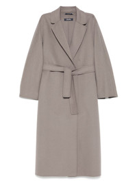 virgin-wool coat Highlights - Grey - Belted waist - Two side patch pockets - Long sleeves Imported Composition Virgin Wool 100% SIZE & FIT Model measurements Height 5 ft 11 in(1.8 m) Bust/Chest 31.49 in(80 cm) Hips 36.61 in(93 cm) Waist 24.4 in(62 cm) FittingInformation Designed to be unstructured, offering a loose fit throughout The belt offers adjustability for fitted preferences Made from a midweight non-stretch fabric Washing instructions Dry Clean Only
