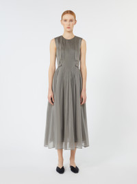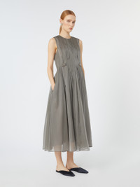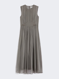 DETAILS Sleeveless midi dress with pleated pattern that adds fullness to the skirt. Silk-blend organza dress Fit and flare fit Crew neck and plastron on the front Back concealed zip fastening Side inset pockets Removable jewel appliques at the front waist Lined COMPOSITION AND CARE Fabric 54% silk, 46% polyester; lining 100% cotton; - exclusive of decoration. Do not wash; do not bleach; do not tumble dry; cool iron; professionally dry clean perchloroethylene - mild process; do not wet clean.; remove the decorations before washing. Distributed by Max Mara S.r.l., registered office in Reggio Emilia (Italy), Via Giulia Maramotti 4, 42124 (IT)