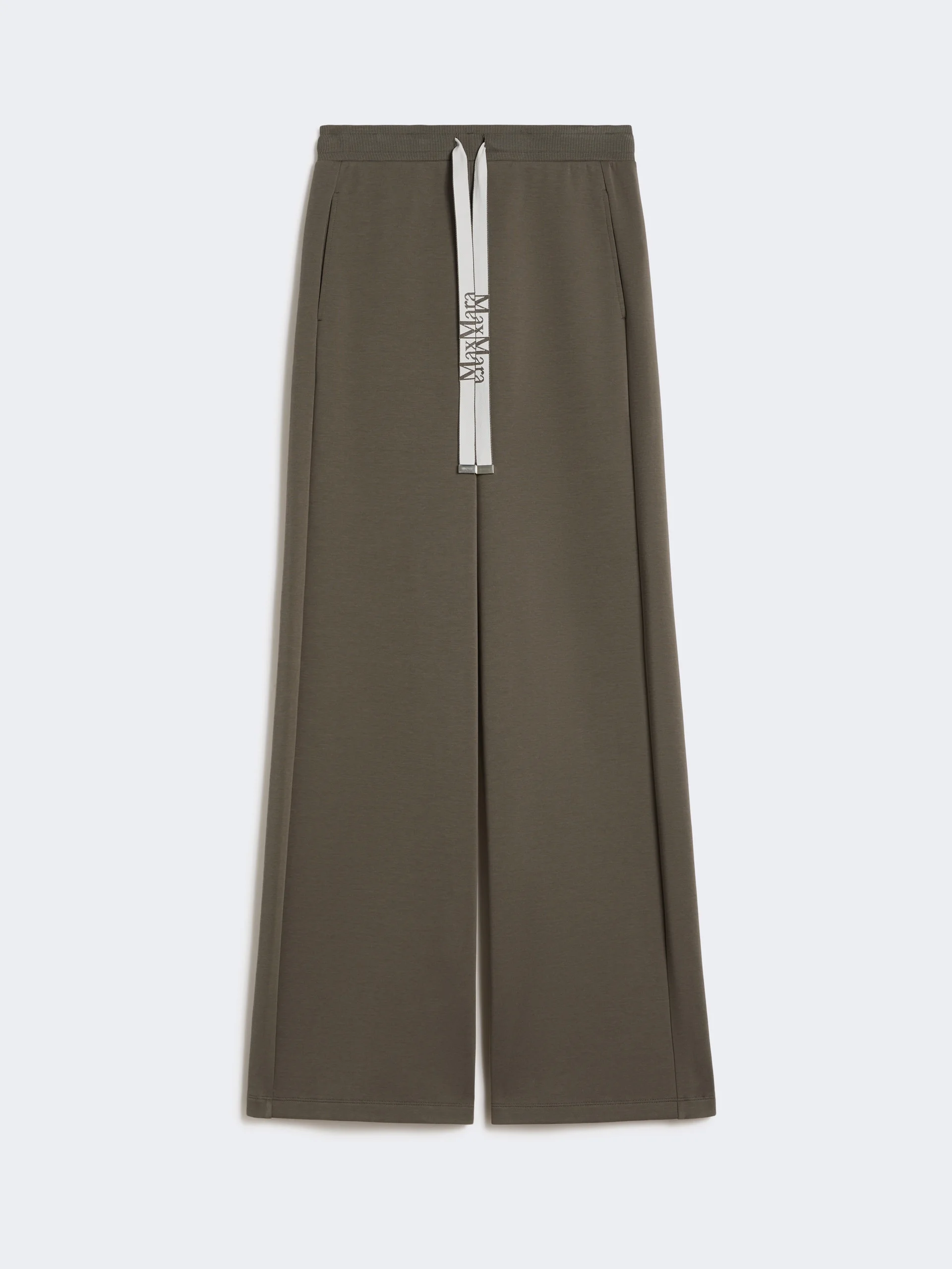 DETAILS Relaxed-fit technical-feel trousers. - Cotton jersey trousers - Wide leg - Elasticated waist with a jacquard ribbon drawstring - In-seam side pockets - Welt pocket on the back right-hand side COMPOSITION AND CARE 78% cotton, 22% polyester. Machine wash cold delicate cycle; do not bleach; do not tumble dry; flat drying in the shade; cool iron; professionally dry clean perchloroethylene - mild process; professional wet cleaning - very mild process.; iron with a cloth between.; using neutral detergent.; protect accessories before washing.; turn the articles inside out before washing.; to be ironed on reverse. Distributed by Max Mara S.r.l., registered office in Reggio Emilia (Italy), Via Giulia Maramotti 4, 42124 (IT) Collection: 'S Max Mara Product code: 9781056106007 - SMMBALI