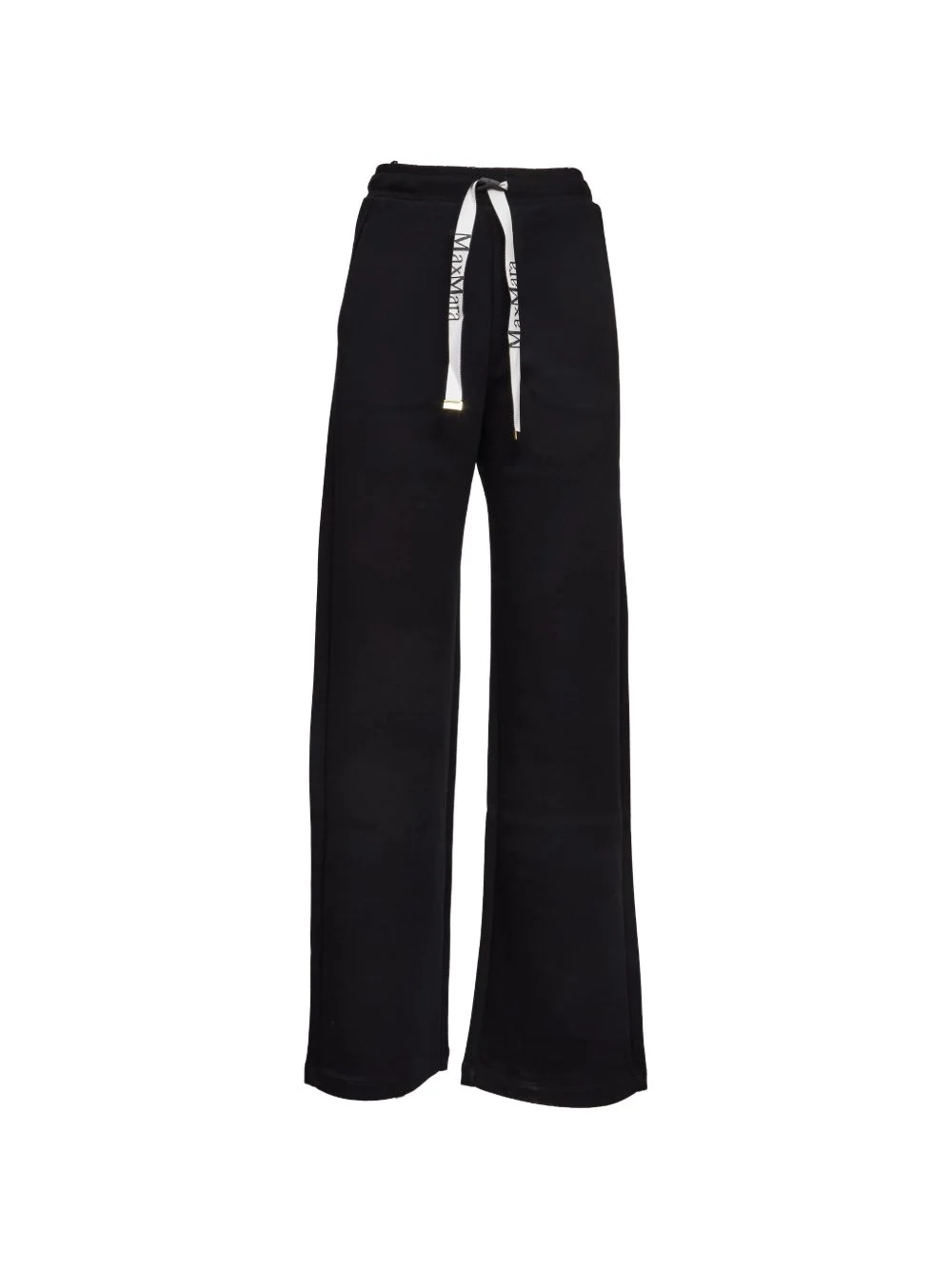 wide-leg drawstring trousers Highlights - Black - Drawstring fastening - Side pockets - Wide leg Imported Composition Cotton 78%, Polyester 22% Washing instructions Read Manufacturer Guidelines