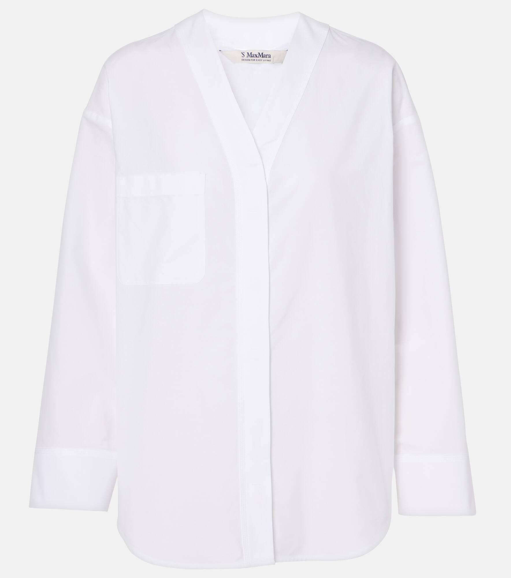 Product Details - Material: 100% cotton - Care instructions: machine wash at 30 degrees - Made in Romania - Designer color name: Bianco - Closure: concealed buttoned front - Pockets: breast pocket - Item number: P01017161 Size & Fit - True to size - Dropped shoulders - Designed for a loose fit - Non-stretchy fabric - Falls to the hip - DT = German size - The model seen in the picture is 178cm-5'10" and wearing a size DT 34