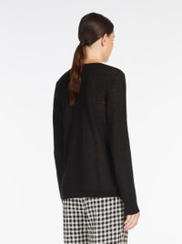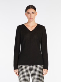 DETAILS Jumper in lightweight pure linen yarn. Straight-cut style with a ribbed V neck and long sleeves. COMPOSITION AND CARE 100% flaxlinen. Hand wash cold; do not bleach; do not tumble dry; flat drying in the shade; cool iron; professionally dry clean perchloroethylene - mild process; do not wet clean.; iron with a cloth between.; using neutral detergent.; turn the articles inside out before washing.; to be ironed on reverse. Distributed by Max Mara S.r.l., registered office in Reggio Emilia (Italy), Via Giulia Maramotti 4, 42124 (IT)