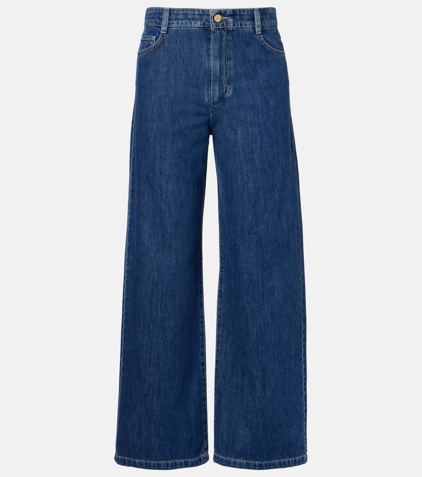 S Max Mara conveys contemporary elegance through streamlined silhouettes and premium fabrics. Case in point, the Zeus jeans are cut into a wide-leg silhouette and feature a classic five-pocket construction. Product Details - Material: 93% cotton, 7% kapok - Care instructions: machine wash cold - Made in Tunisia - Color: blue - Designer color name: Medio Pulito - Item color: blue - Closure: zipper fly, button fastening - Pockets: five pockets - Belt loops - Item number: P01125834 Size & Fit - Fits small to size - we recommend trying one size larger - Non-stretchy fabric - Wide-leg - High-rise - The model seen in the picture is 178cm-5'10" and wearing a size DE 36