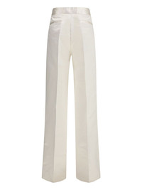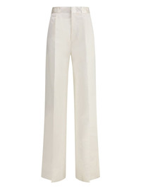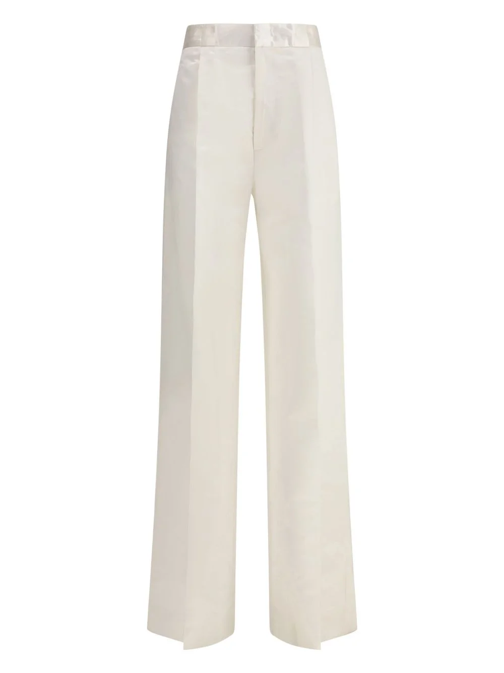 satin-finish pants Highlights - White - Satin finish - Pressed centre crease - Straight leg - High waist - Zip fly Made in Italy Composition Silk 60%, Polyester 40% Washing instructions Read Manufacturer Guidelines