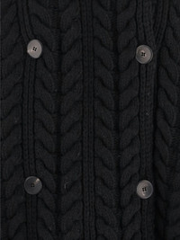 cable-knit double-breasted cardi-coat Highlights - Black - Cable knit - Double-breasted - Button fastening - Ribbed knit details - Spread collar Imported Composition Virgin Wool 70%, Cashmere 30% Washing instructions Read Manufacturer Guidelines