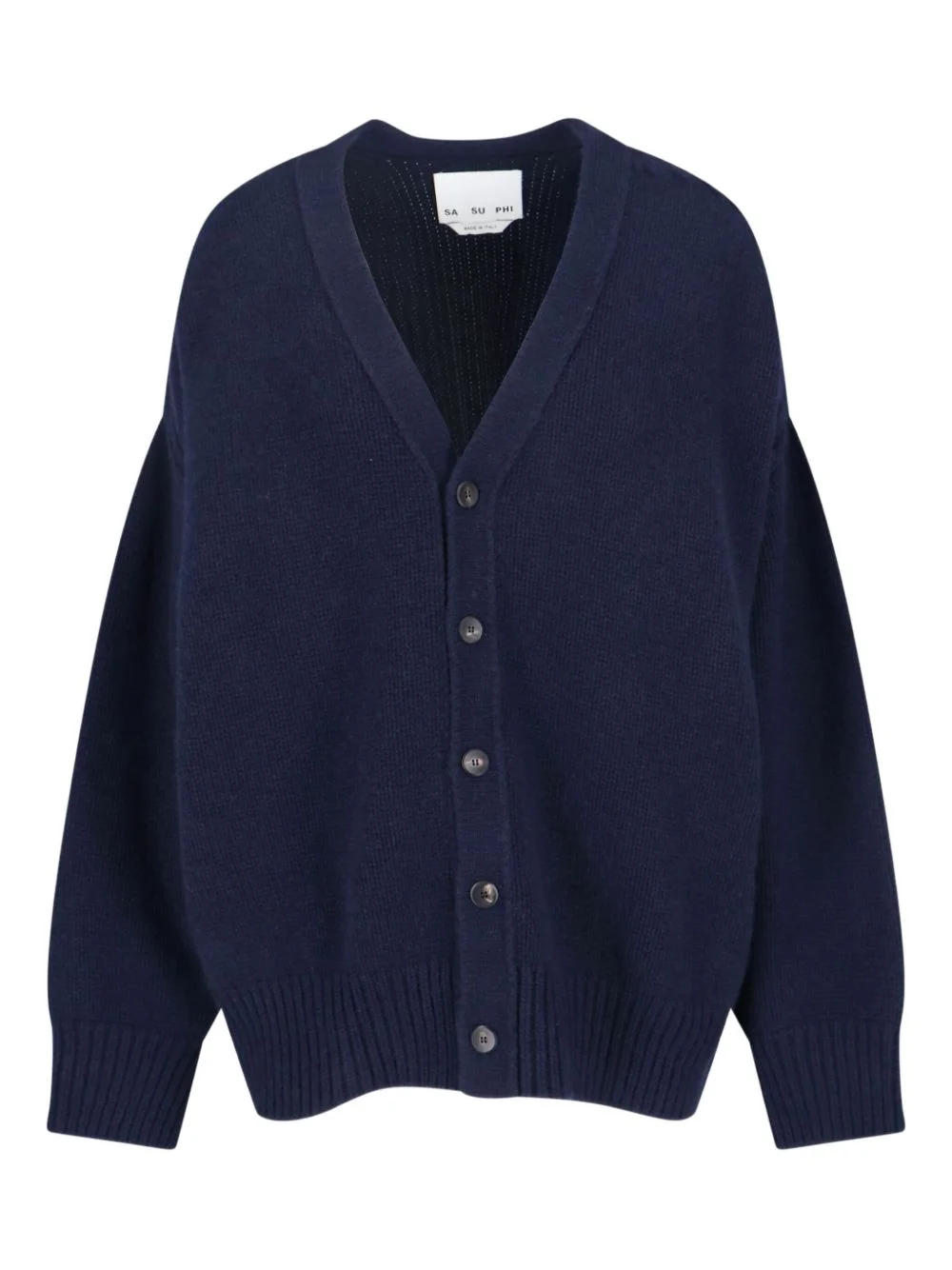 V-neck cardigan Highlights - Navy blue - V-neck - Front button fastening - Ribbed trims - Relaxed fit Made in Italy Composition Cashmere 100% Washing instructions Read Manufacturer Guidelines