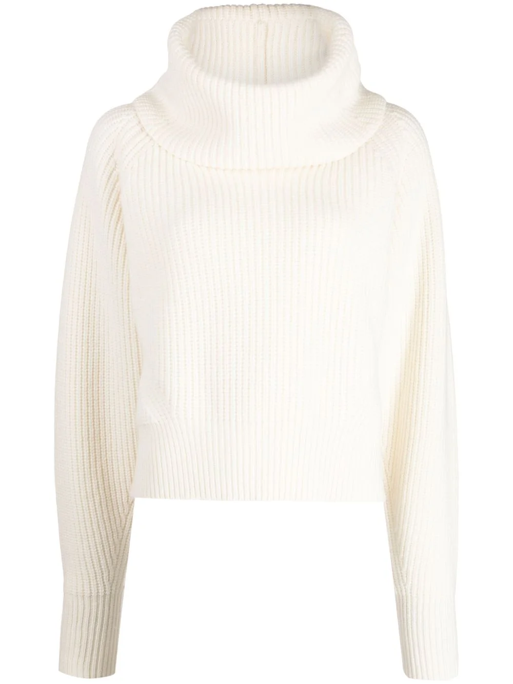 roll-neck wool-cashmere jumper Highlights - Ivory white - Wool-cashmere blend - Ribbed knit - Roll neck - Long sleeves - Straight hem Made in Italy Composition Wool 70%, Cashmere 30% Washing instructions Hand Wash
