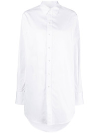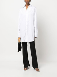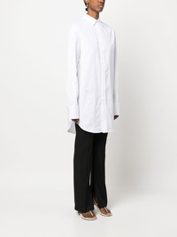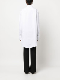 long-length cotton shirt white cotton front button fastening classic collar long sleeves buttoned cuffs curved hem long length Made in Italy Composition Cotton 100% SIZE & FIT Model measurements Height 5 ft 10 in(1.77 m) Bust/Chest 29.92 in(76 cm) Hips 34.25 in(87 cm) Waist 23.62 in(60 cm) FittingInformation This piece fits true to size. We recommend you get your regular size Cut for a loose fit Made with a mid-weight non-stretch fabric Washing instructions Hand Wash