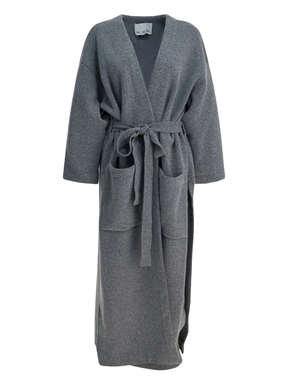 pockets belted coat Highlights - Grey - Open front - Belt - Front pockets - Long sleeves Made in Italy Composition Wool 100% Washing instructions Dry Clean Only