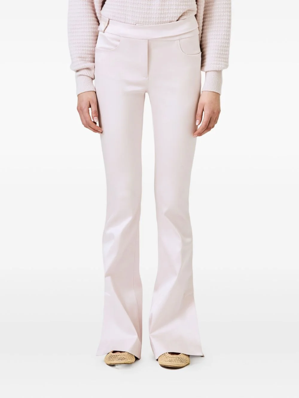 silk blend flared trousers Highlights - Pink - Concealed front fastening - Flared design Made in Italy Composition Silk 59%, Cotton 37%, Elastane 4% Washing instructions Read Manufacturer Guidelines