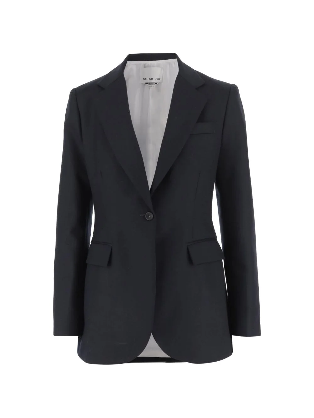 single-breasted blazer Highlights - Navy blue - Single-breasted - Button fastening - Notched lapels - Flap pockets - Long sleeves Imported Composition Fabric 100% Washing instructions Read Manufacturer Guidelines