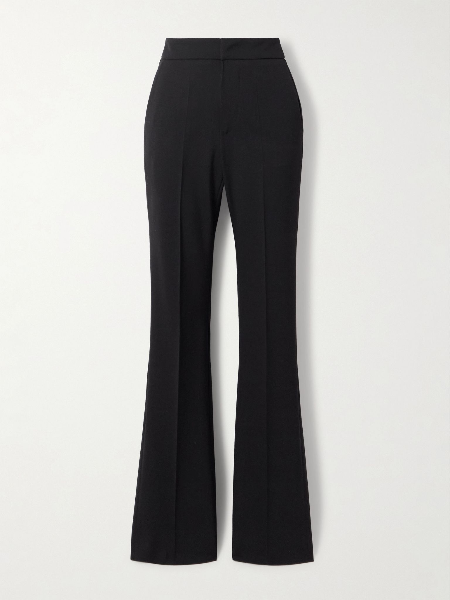 SASUPHI has a deep appreciation for architecture and pays great attention to shape when designing. These pants are tailored from twill and have slim legs that flare out at the ankles. Wear yours with knitwear and pumps. Size & Fit - Fits true to size, take your normal size - High-rise, cut for a a slim fit with a flared hem - Mid-weight, slightly stretchy fabric - Model is 180cm/ 5'11" and is wearing an IT 38 Model measurements: - Bust: 75cm/ 29.5" - Waist: 60.5cm/ 24" - Hip: 88.5cm/ 35" Details & Care - Black twill - Concealed button, hook and zip fastening at front - 53% polyester, 43% wool, 4% elastane - Dry clean