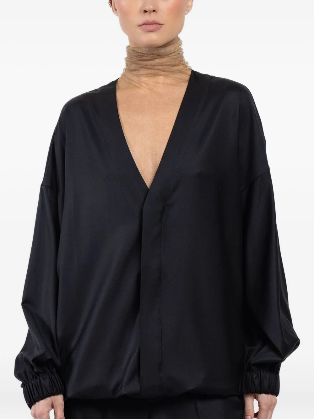 V-neck button jacket Highlights - Navy blue - V-neck - Button fastening - Long sleeves - Elasticated cuffs Imported Composition Wool 100% Washing instructions Dry Clean Only