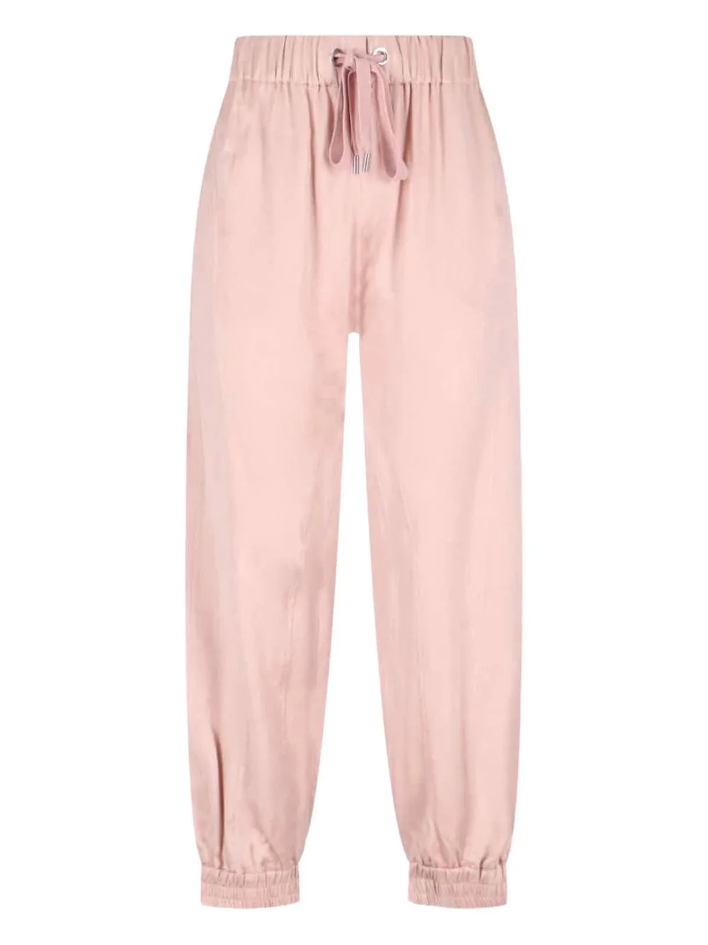 elasticated-cuff drawstring trousers Highlights - Pink - Drawstring fastening - Elasticated cuffs - Side pockets - Curved yoke detail - Panelled design Imported Composition Fabric 100% Washing instructions Read Manufacturer Guidelines