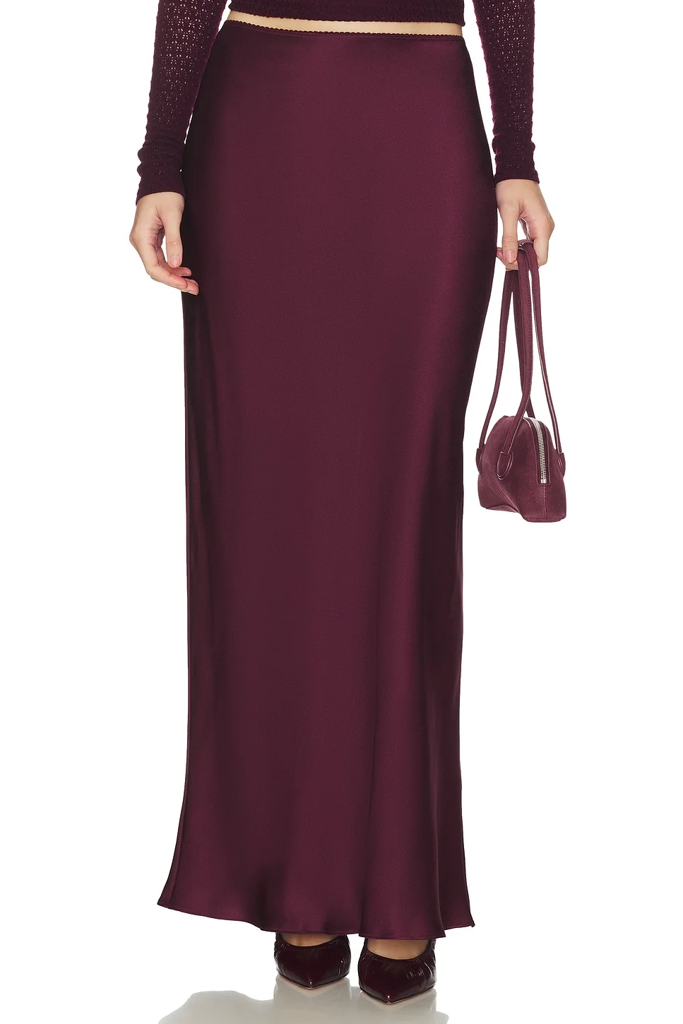 - 100% silk - Made in U - S. - Dry clean only - Unlined - Pull-on styling - Lightweight satin fabric - Elasticized waistband - Skirt measures approx 42" in length - Revolve Style No. SLYN-WQ17 - Manufacturer Style No. GRACE2506