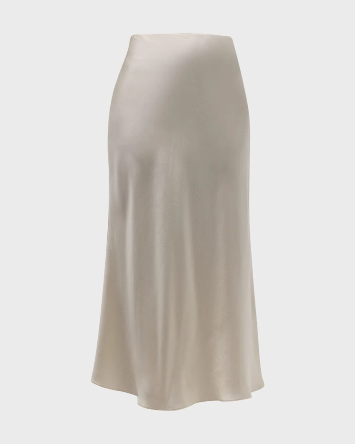 Sablyn skirt in a lustrous finish Highrise waistband Hem falls below the knee Aline silhouette Slipon style Silk Dry clean Made in USA
