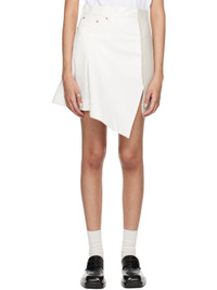 Non-stretch denim and wool melton skirt. · Asymmetrical paneled construction · Belt loops · Four-pocket styling · Concealed zip closure at side · Contrast stitching in tan · Partial plain-woven cupro lining Supplier color: Ecru Body 1: 100% cotton. Body 2: 100% wool. Lining: 100% cupro. Made in Japan 242445F090007