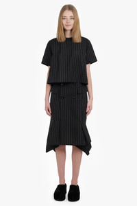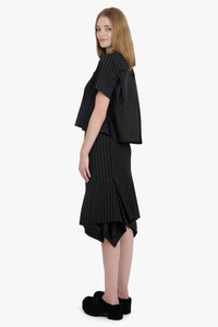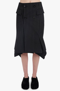 ASYMMETRIC FLARED HEM STRIPE MIDI SKIRT WITH BUTTON DETAIL | BLACK/WHITE