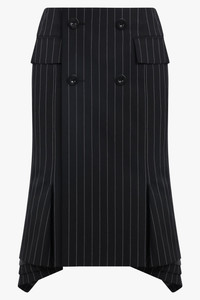- Fabrication: 100% Cupro, Outer:100% Wool - Interlock twill weave - Layered design - Rear zip fastening - High waist - Check pattern - Pleat detailing - Decorative button detailing - Rear slit - Full lining - Straight hem - Mid-length Size and Fit Sophie: Model is 179cm/5’10” and is wearing a size JP1 Model Measurements: Bust: 76cm, Waist: 61cm, Hips 87.5cm Japanese sizing Fits true to size