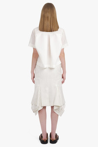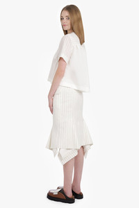 ASYMMETRIC FLARED HEM STRIPE MIDI SKIRT WITH BUTTON DETAIL | OFF WHITE/BLACK