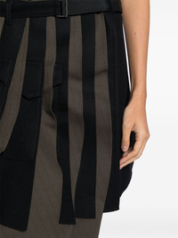 asymmetric pleated wool skirt Highlights - Navy blue/khaki - Wool - Pinstripe pattern - Contrasting panel detail - Asymmetric design - Pleat detailing - Belt loops - Detachable waist belt - Knee-length Imported Composition Outer: Wool 100% Lining: Cupro 100% SIZE & FIT Model measurements Height 5 ft 10 in(1.77 m) Bust/Chest 31.49 in(80 cm) Hips 35.43 in(90 cm) Waist 25.19 in(64 cm) FittingInformation This midi-length skirt is intended to be worn just below the waist The belt offers adjustability for fitted preferences Made from a midweight non-stretch fabric