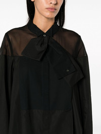 attached-detail sheer-panels shirt Highlights - Black - Chiffon - Poplin texture - Semi-sheer panels - Applique detail - Wingtip collar - Concealed front button fastening - Long sleeves - Buttoned cuffs - Straight hem Imported Composition Polyester 65%, Cotton 35% SIZE & FIT Model measurements Height 5 ft 11 in(1.8 m) Bust/Chest 30.7 in(78 cm) Hips 35.03 in(89 cm) Waist 24.4 in(62 cm) FittingInformation Designed to be unstructured, offering a loose fit throughout Made from a midweight non-stretch fabric This piece fits true to size – take your usual size Washing instructions Dry Clean Only
