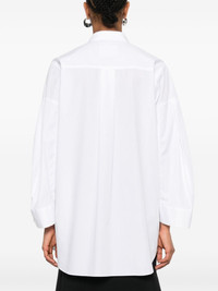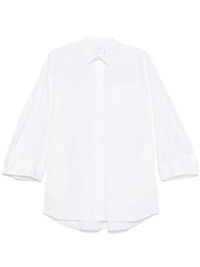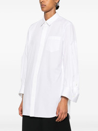 button-up shirt Highlights - White - Poplin texture - Concealed front button fastening - Classic collar - Drop shoulder - Long sleeves with buttoned cuffs - Chest patch pocket - Rear curved hem Imported Composition Polyester 65%, Cotton 35% SIZE & FIT Model measurements Height 5 ft 10 in(1.77 m) Bust/Chest 33.07 in(84 cm) Hips 37 in(94 cm) Waist 24.8 in(63 cm) FittingInformation Designed to be unstructured, offering a loose fit throughout Made from a midweight non-stretch fabric
